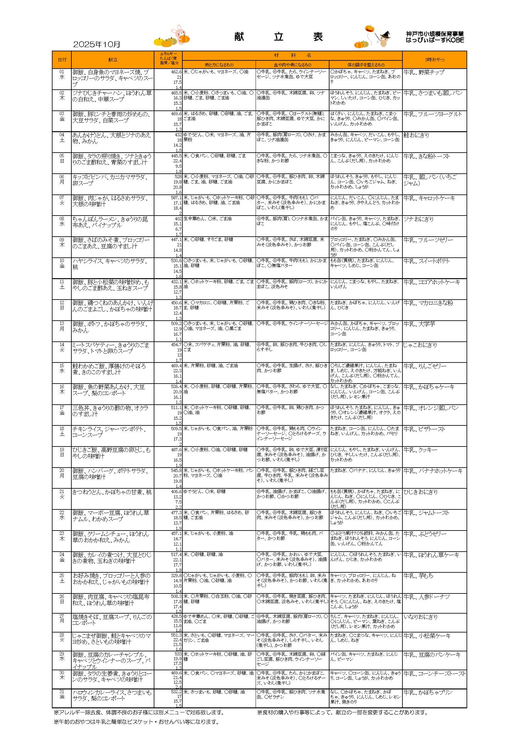 10月の献立