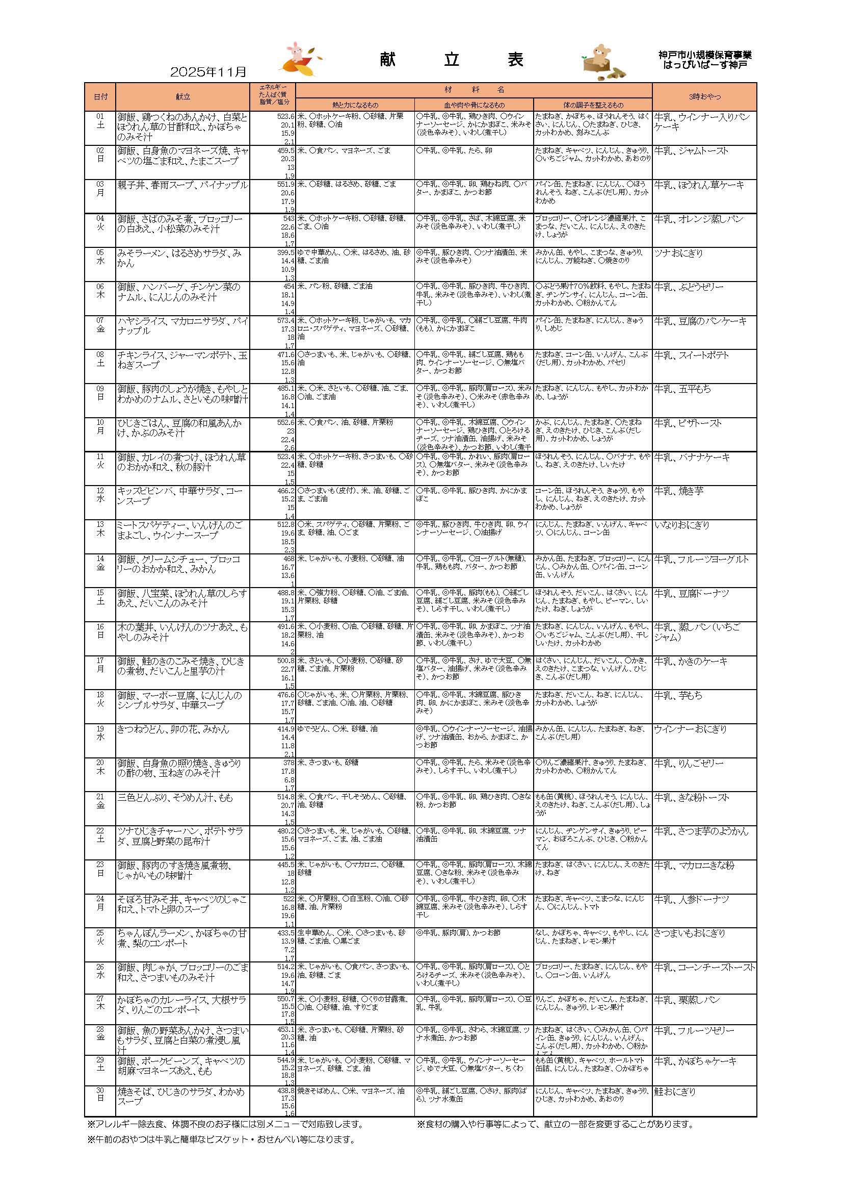 11月の献立情報をお届けします!